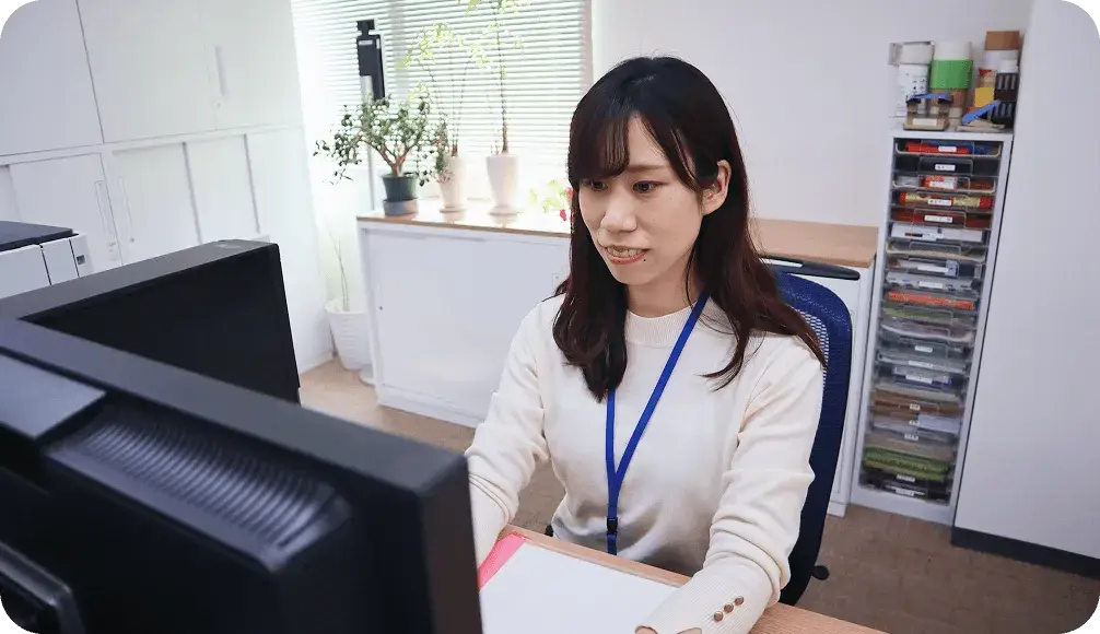 来客対応をしながら、給与計算や採用向けチラシ作成などを行います。